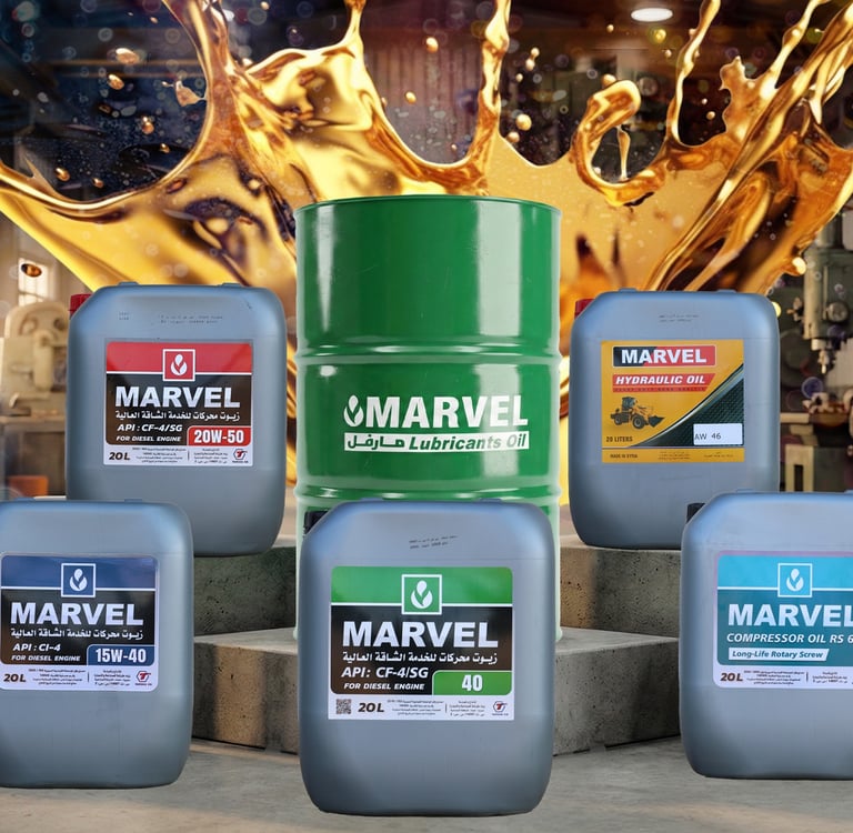 زيوت محركات مارفل مصنّعة من زيوت أساس نقية وإضافات كيميائية مستوردة من أفضل الشركات المتخصصة بالإضافات الكيميئية
